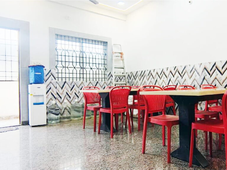 For lunch breaks, a separate dedicated hall is available — fully furnished with dining tables and chairs to seat your entire group at once. Food and beverages are not supplied by us. You are welcome to bring in catering from any external vendor of your choice, or self-arrange meals for your team.